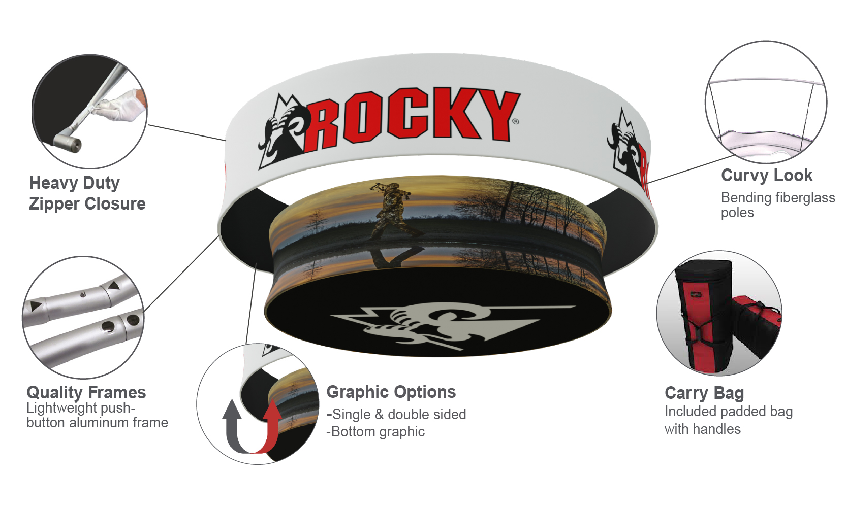 Lightweight & durable - aluminum frame with wrinkle-free polyester graphics