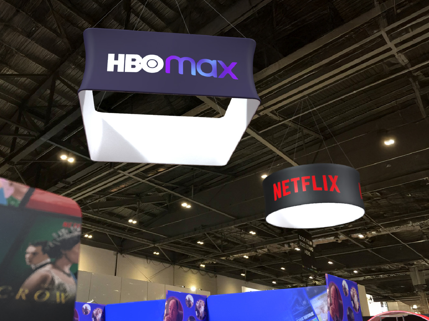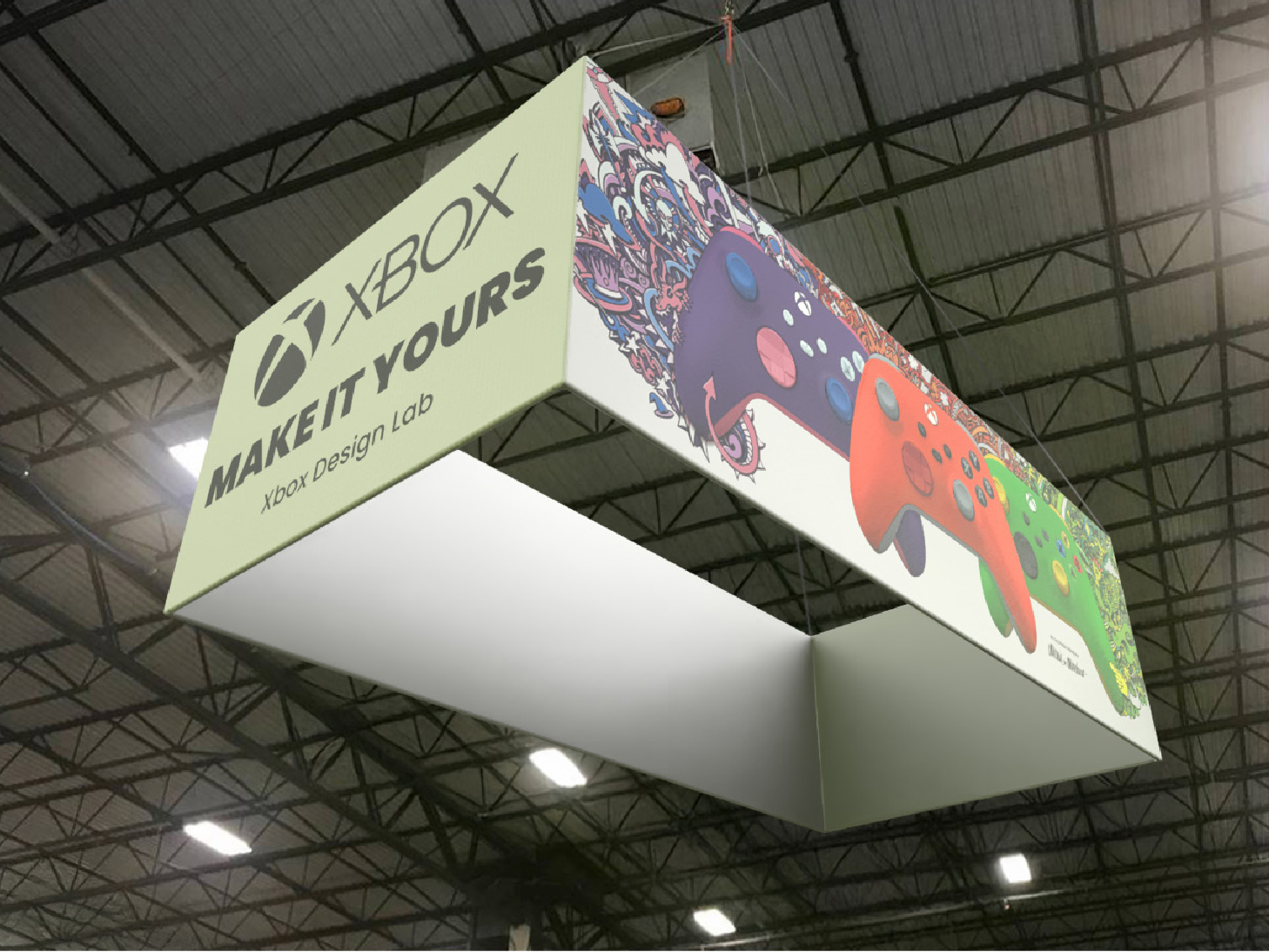 Our Hanging Signs are the ultimate way to create maximum visibility on the trade show floor. Suspended high above your booth, they stand out immediately and attract visitors from a distance. The system is lightweight, easy to assemble, and delivers a premium look thanks to its sleek finish.
